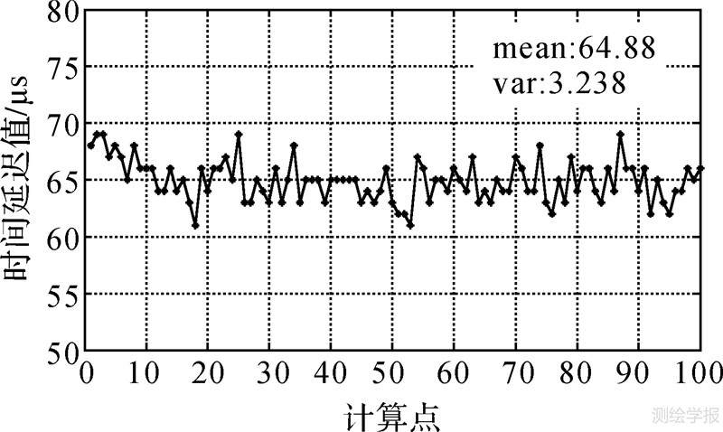 (3) 如图 13所示,经过100个实测罗兰C信号的时间延迟估计值的统计可知,其均值为64.88 μs,方差为3.238 μs,方差值小于信号载频周期的二分之一,因此,所得的结果不仅可以用于天波延迟的估计,还可以作为判别相位跟踪和周期识别正确率的辅助依据[1]。