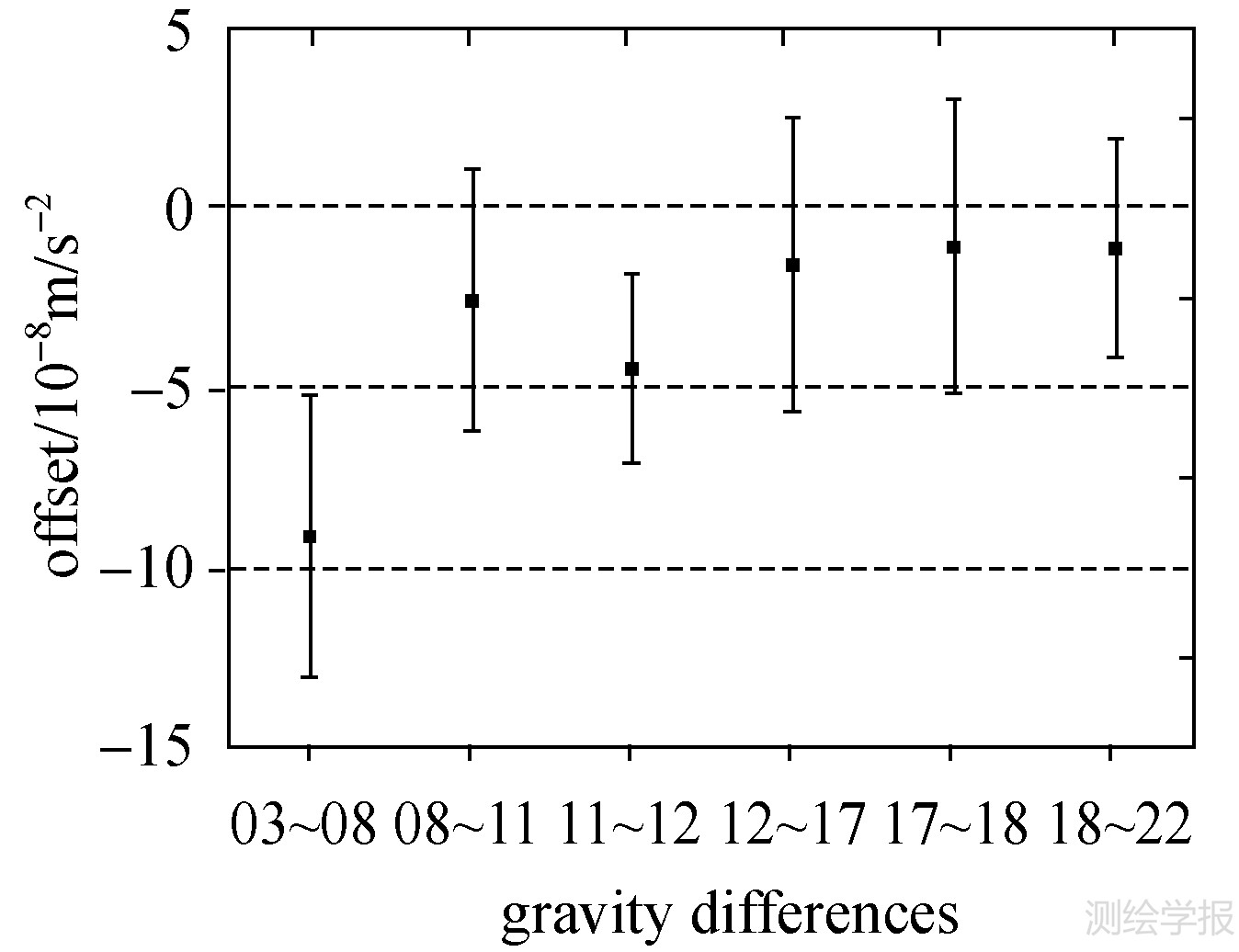| 图 2 A10-022绝对重力仪观测段差结果与相对重力仪测量的标定点之间段差结果的互差 Fig. 2 Offset of the gravity segment difference between the A10-022 absolute gravimeter and relative gravimeters |