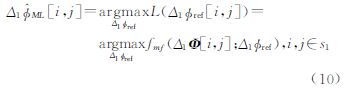 于是,可根据式(9)实现对参考载频相位梯度Δ1φref的最大似然估计