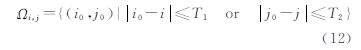 分析2.1节中的最大似然估计方法,每个像素的梯度估计过程都独立于其邻域像素,故可通过对邻域信息的联合处理来提高估计的稳健性,定义像素(i,j)对应的邻点集Ωi,j为