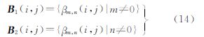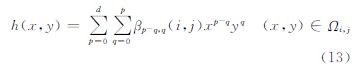 式中,T1、T2为整数,决定了邻点集大小。以场景目标像素(i,j)为原点建立xOy局部平面坐标系,其邻点集Ωi,j对应的局部高程模型可由d阶二维曲面多项式来拟合,即 此时,局部曲面模型的多项式系数集合{βm,n}就决定了相位梯度大小,具体来说,纵向和横向梯度所依赖的系数子集分别为 故对各像素的相位梯度重建,可转化为对其邻点集局部曲面多项式系数的最大似然估计,仍以纵向梯度估计为例,可表示为 在信号处理中,通过穷举法寻找系数组合的最优估计