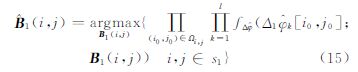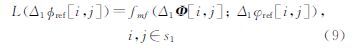 。分析式(8),在相干系数γ、等效视数n和梯度观测向量Δ1Φ[i,j]已知的情况下,多频相位梯度的联合概率密度只取决于Δ1φref[i,j]。而注意到Δ1φref[i,j]即为相位梯度重建中的待估计量,故对Δ1φref[i,j]作参数估计的似然函数可表示为