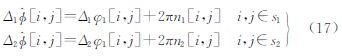 2 相位梯度重建算法定义InSAR系统获取的二维相位观测矩阵位于大小为N×M的支撑域s上,即{i,j}∈s,且i=0,1,…,N-1,j=0,1,…,M-1。进一步地,定义s的子集s0为{i,j}∈s0,且i=0,1,…,N-2,j=0,1,…,M-2;并定义s的另外两个子集:s1为{i,j}∈s1,且i=0,1,…,N-2,j=0,1,…,M-1,以及s2为{i,j}∈s2,且i=0,1,…,N-1,j=0,1,…,M-2。
