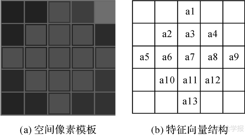 | 图 1 空间像素模板和特征向量构建 Fig. 1 Spatially correlated pixels templates and construction of feature vector |