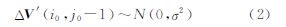 对于单个像素,其左侧毗邻位置的像素灰度值与中心位置的像素灰度值的差值越接近于零,表示左侧毗邻位置与中心位置的相关性越大;对于采样像素集合,其左侧毗邻位置的像素灰度值向量与中心位置的像素灰度值向量的差值向量中,接近零值的元素数量越多,表示左侧毗邻位置与中心位置的相关性越大。因此,所获得差值向量ΔV′(i0,j0-1)中各元素可以被认为是服从均值为0,方差为δ2的高斯分布,以ΔV(i0,j)即