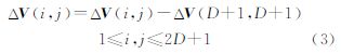 将单个相对位置的差值向量推广到(2D+1)×(2D+)1的空间像素模板,每个相对位置与中心位置的差值向量为