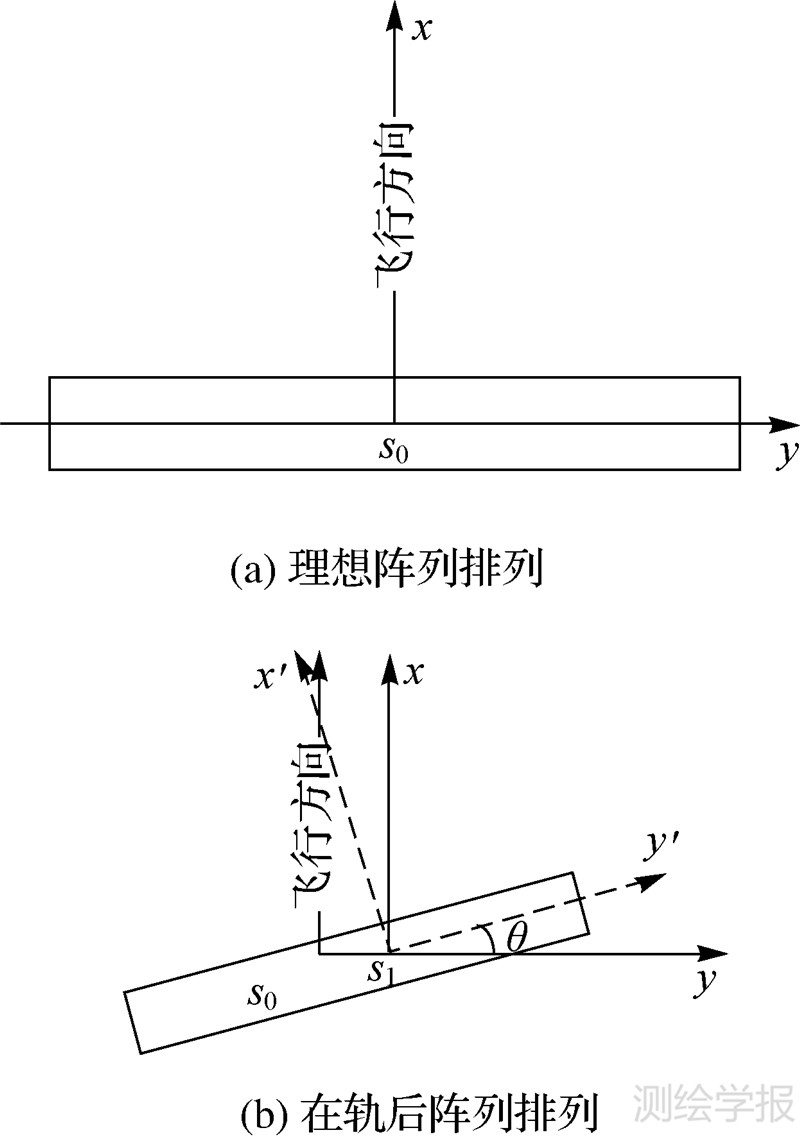 如图 3(b),现假定线阵列排列旋转角为θ,旋转中心在探元s1位置,而主点位置仍为s0。则对于任意探元s,在坐标系s1x′y′中有