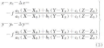 对公式(2)引入内方位元素误差引起的像点偏移(Δx,Δy),式(2)可化为