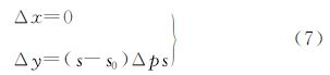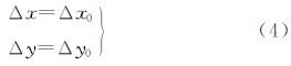 2.2.1 主点偏移误差假定主点x0、y0的平移误差为Δx0、Δy0,则其引起的像点偏移为等量平移,即