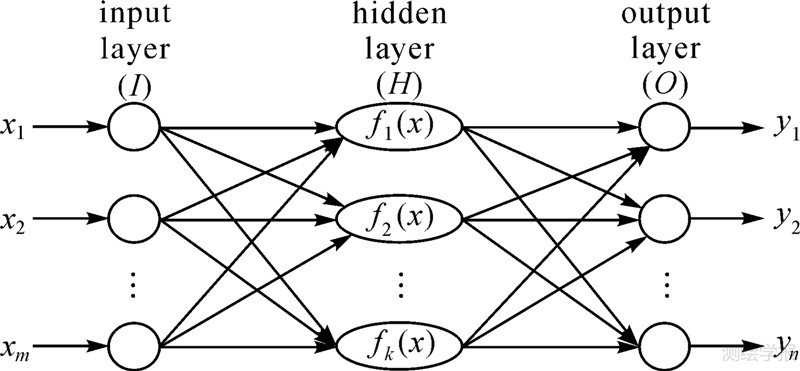xk、yi分别为向量X的第k个输入和输出层的第i个输出。aj、bj分别为第j个隐含层结点的小波基伸缩因子及平移因子;wj,k、wi,j分别为I层结点k和H层结点j以及H层结点j和O层结点i的连接权值;h(x)为Sigmoid函数。