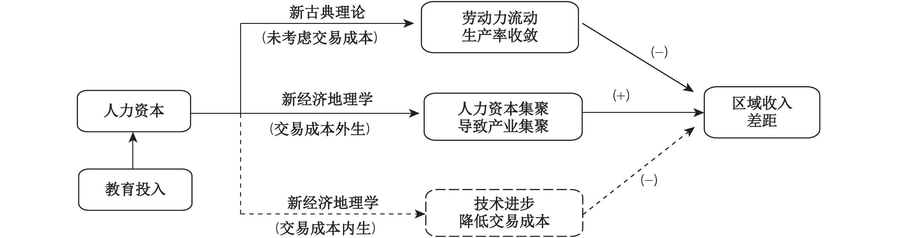 图 1 有关人力资本因素对区域收入差距研究的机制概述 |