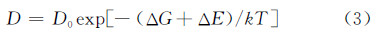 电脉冲诱发的能量将促进原子的迁移,原子的扩散系数D [12]: