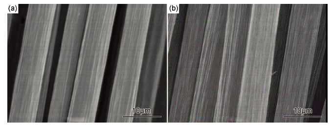 ![]() | 图 2 CF表面形貌扫描电镜照片 (a)未处理CF;(b)在N2气氛下,经400℃,4h处理CF Fig.2 SEM images of surface for CF (a)non-treated;(b)treated at 400℃ in N2 for 4h | |