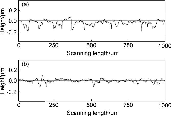 图 13 表面微观形貌(a)非加工面;(b)修型面 Fig. 13 Micro-morphology of surface (a) non-machined surface; (b) shaped surface |