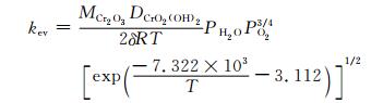 式中:kp*为湿空气中的氧化增重抛物线速率常数;kev为由CrO2(OH)2挥发导致的失重速率,g·cm-2·s-1。