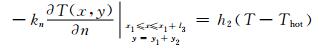 式中:h2为强制对流条件下预浸料表面传热系数; Thot为高温气体温度。