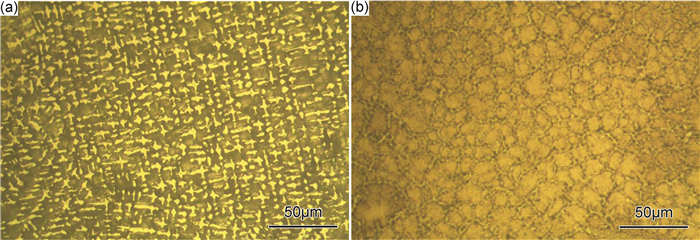 图 1 高熵合金的光学显微组织 (a)AL10;(b)AL13 Fig. 1 Optical microstructures of high-entropy alloys (a)AL10;(b)AL13 |