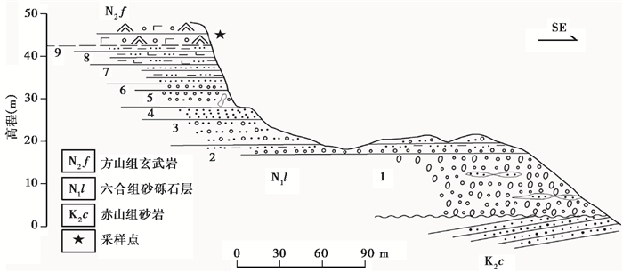 图 3 六合方山地质剖面及采样位置(据方邺森等[4]修编) Fig. 3 The geological profile and sampling position of Liuhe Fangshan, revised from Fang et al., 1979[4] |