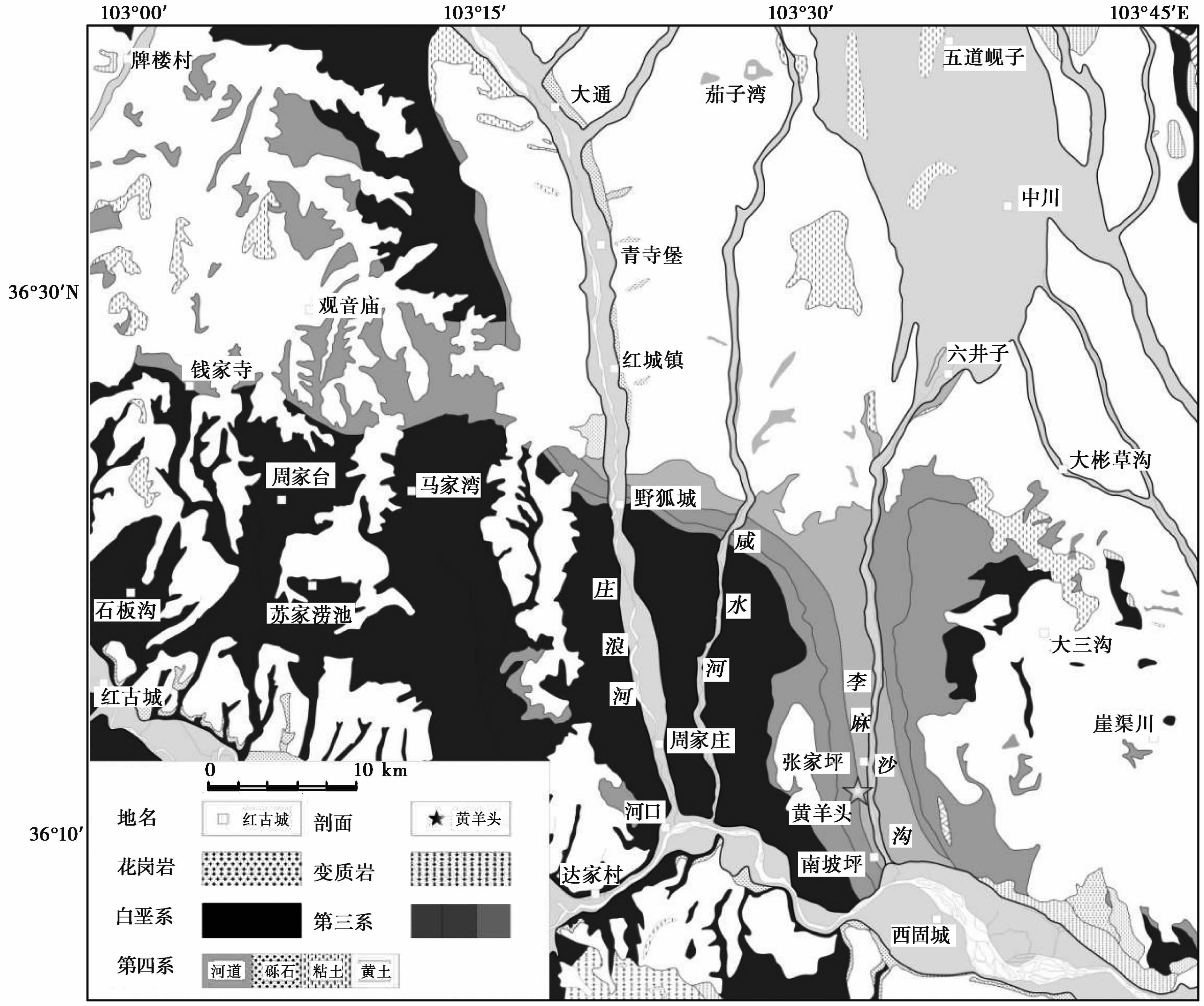 图1 兰州盆地地质简图及采样位置图 Fig.1 Sketch geological map of Lanzhou Basin and location of sampling section |