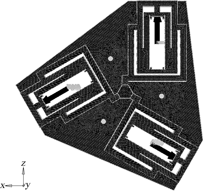 | 图 2 3-RPRR拓扑优化有限元模型 Fig. 2 Topology optimization finite element model of3-RPRR |