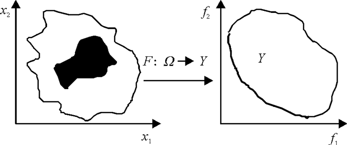 where x =(x1, x2, …, xn)is an n-dimensional decision variable vector. The constraints define the feasible region Ω and any vector x in the feasible region Ω is called a feasible solution. Y= {y|y=F(x), x∈Ω }is referred to as objective space.