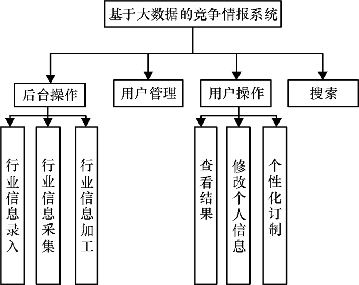 1 系统总体设计 1.1 系统目标利用Hadoop平台对大数据的处理能力,对系统采集的信息用基于Hadoop的KNN算法进行处理分析,使得处理后的竞争情报信息可以快速、准确地显示在用户操作界面,让用户可以及时了解到自己所关注的信息.管理员通过系统,可以及时进行信息的采集,并对信息进行处理,普通用户通过系统可以个性化的订制竞争对手的信息情报,并进行检索.