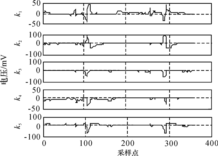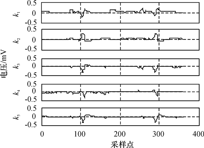 | $ {{\bar k}_i}\left( n \right) = {k_i}\left( n \right) - \left( {1/M} \right)\sum\nolimits_{j = 1}^M {{k_i}\left( j \right)} ,\left( {n = 1,2, \cdots ,M} \right), $ | (1) |