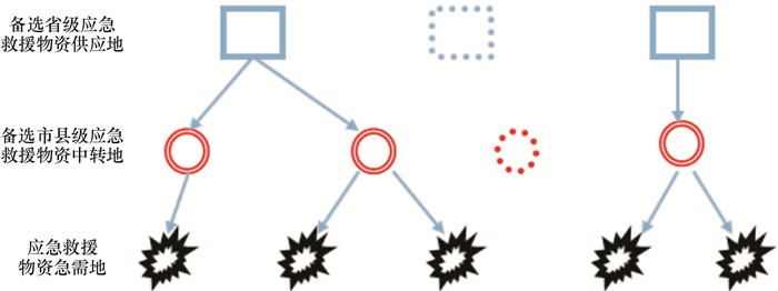 图 1 物资配送网络的简化结构 Figure 1 Simplified network structure of material allocation |