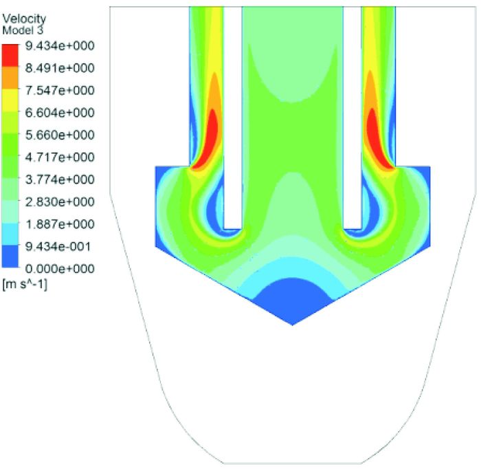图 7 模型Ⅲ的水流分布云图 Figure 7 The flow rate distribution of model Ⅲ |