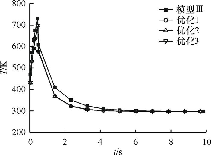 图 9 优化前后监控点A的温度变化图 Figure 9 Variation of temperature in Point A by change of different model |