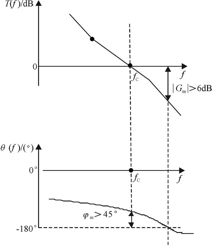 (2) 在穿越频率fC处,幅频特性增益为0 dB,环路放大倍数为1.穿越频率fC大小需适中,可使闭环系统具有良好的响应速度和优良的抗干扰性.