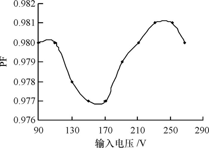 图 7 全电压输入下的PF Figure 7 Plot of PF versus input voltage |