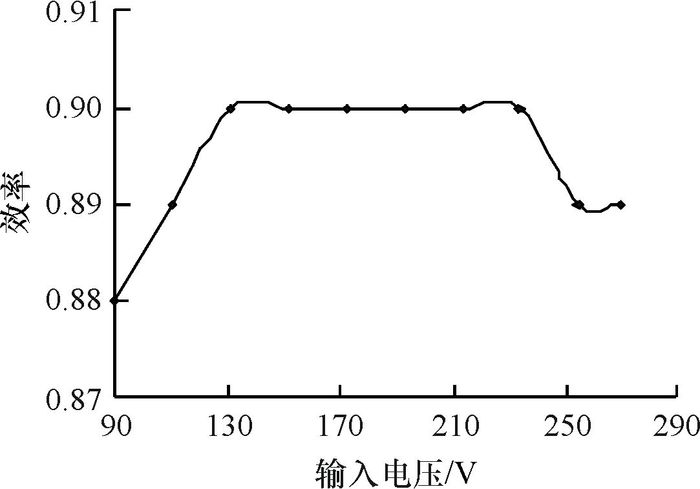 图 8 全电压输入下的效率 Figure 8 Plot of efficiency versus input voltage |