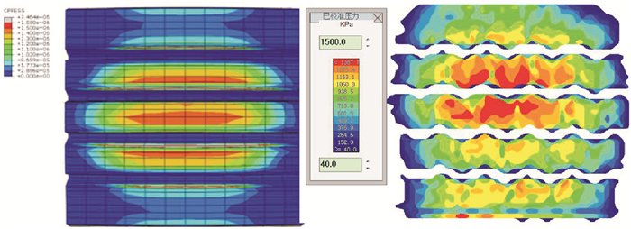 图 2 试验测试与有限元分析对比 Figure 2 Comparison of tire contact pressure distribution |