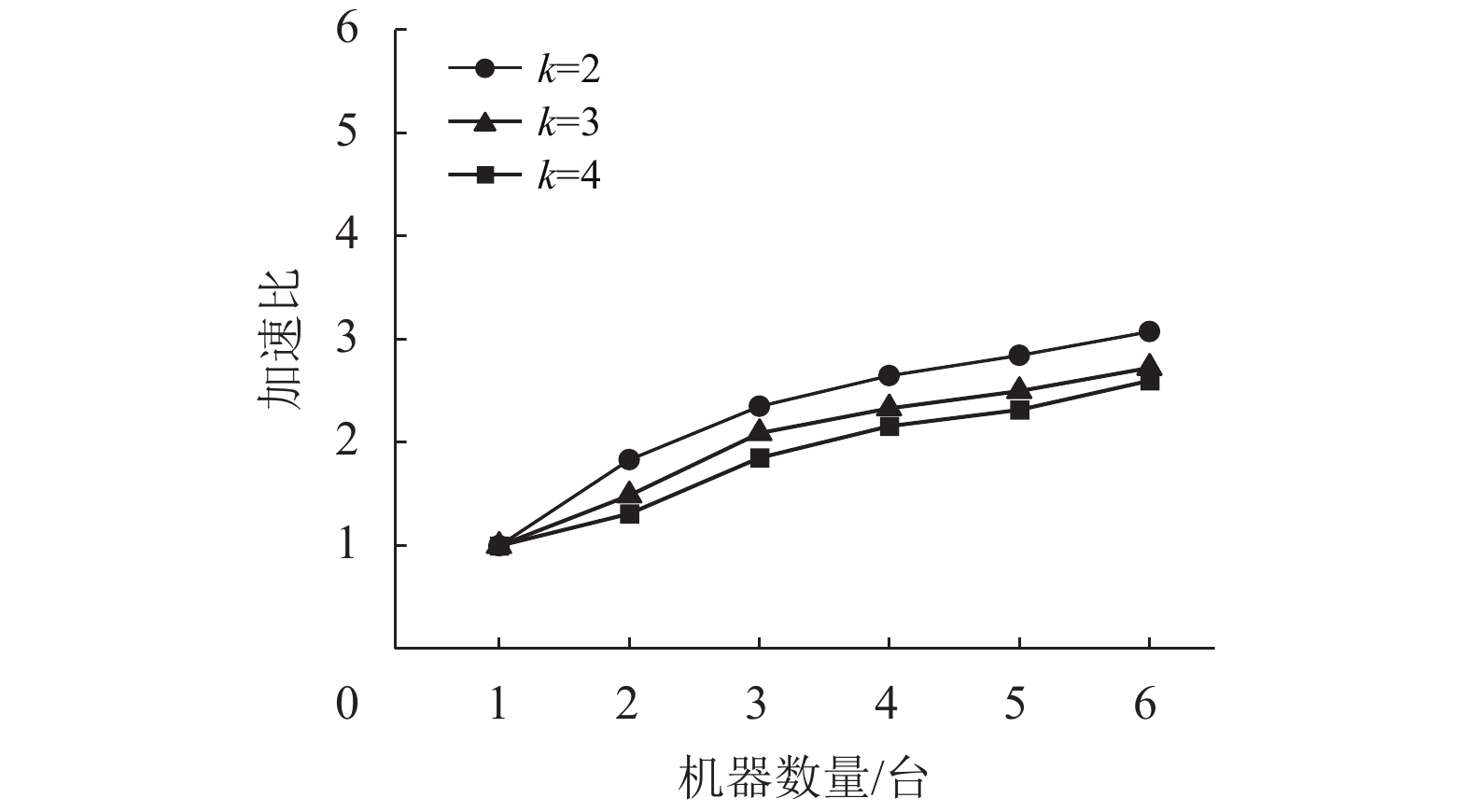 图 2 k-压力中心度并行算法加速效果 Figure 2 Speedup of k-stress centrality parallel algorithm |