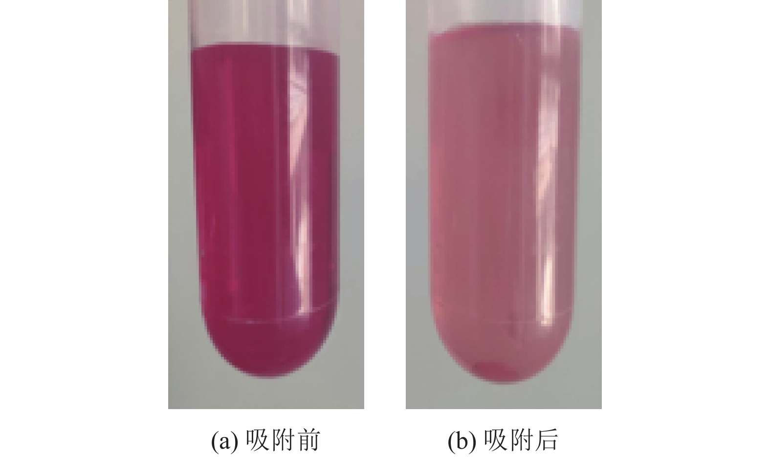 图 3 吸附前及吸附10 min后溶液对比图像 Figure 3 Comparison of solution’s images before and 10 minutes after adsorption |