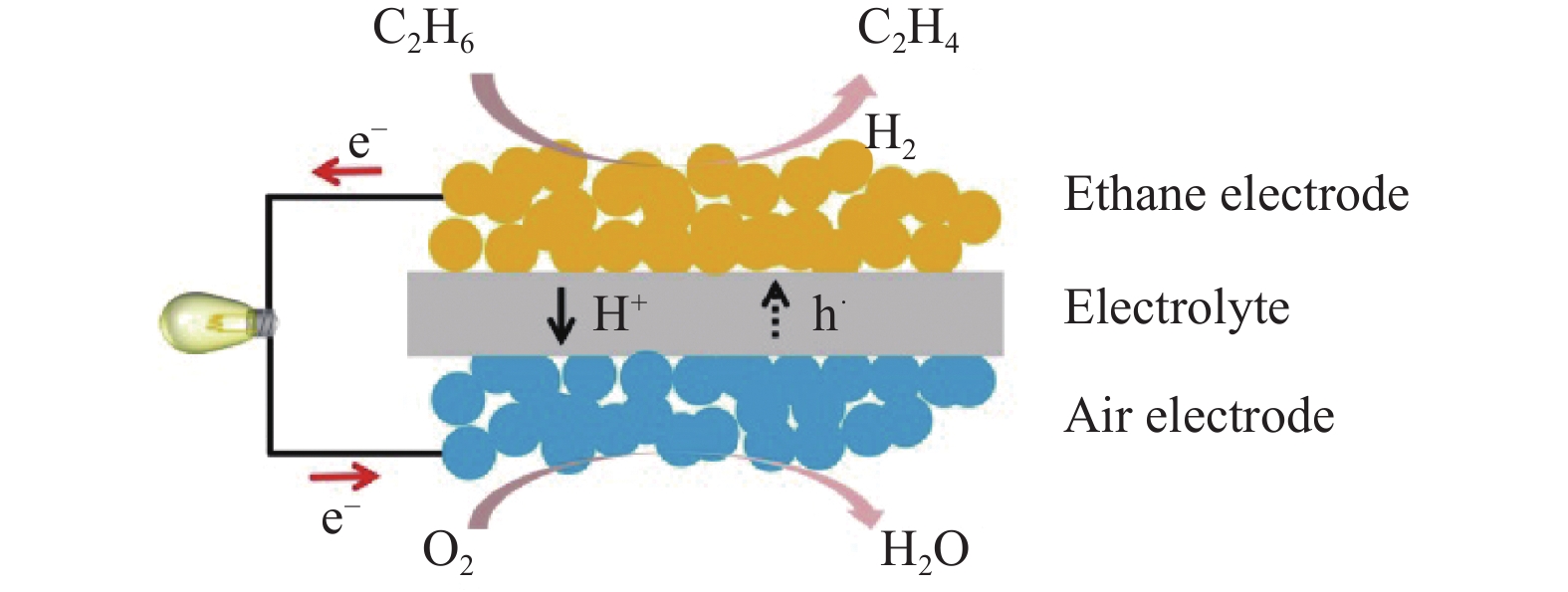 WU W, WANG L C, HU H, et al. Electrochemically engineered, highly energy-efficient conversion of ethane to ethylene and hydrogen below 550 °C in a protonic ceramic electrochemical cell[J].