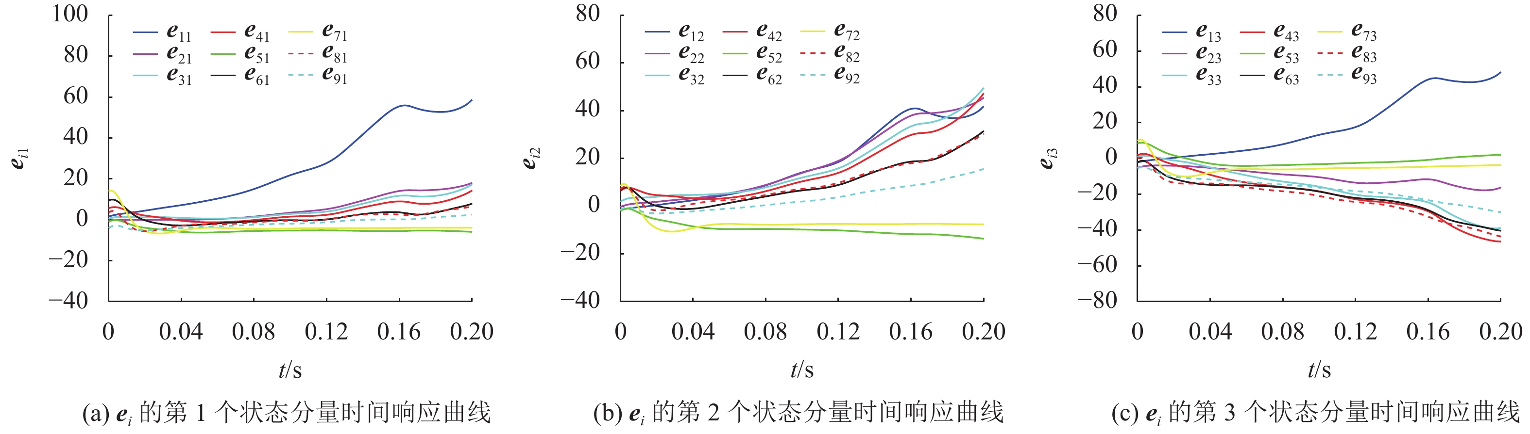| $ \dot V(t) \leqslant \sum\limits_{i = 1}^N {{\boldsymbol{e}}_i^{\rm{T}}({{\boldsymbol{M}}_i}{{\boldsymbol{A}}_i}{\boldsymbol{M}}_{i{\bf{R}}}^{ - 1} - {{\boldsymbol{K}}_i}) {{\boldsymbol{e}}_i} - } \sum\limits_{i = 1}^N {{\boldsymbol{e}}_{{{\boldsymbol{L}}_i}}^{\rm{T}}{{\boldsymbol{Q}}_i}{{\boldsymbol{e}}_{{{\boldsymbol{L}}_i}}}} $ | (20) |