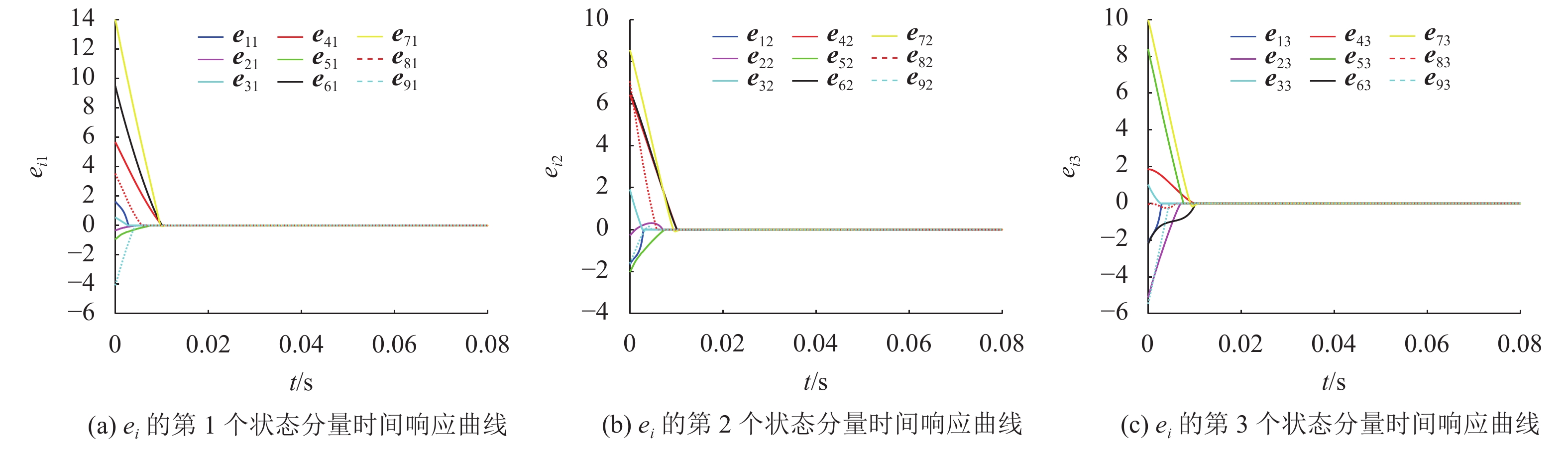 | $ \begin{split} &{{\boldsymbol{x}}_1}(0) = 5{\mathrm{rand}}(3,1) , {{\boldsymbol{x}}_j}(0) = 5{\mathrm{rand}}(4,1) ,\\ &{\boldsymbol{s}}(0) = {(5,8,7) ^{\rm{T}}} , {{\boldsymbol{L}}_i}(0) = 5{\mathrm{rand}}(9,1) , {\boldsymbol{L}}_i^*(0) = 5{\mathrm{rand}}(9,1) \end{split} $ |