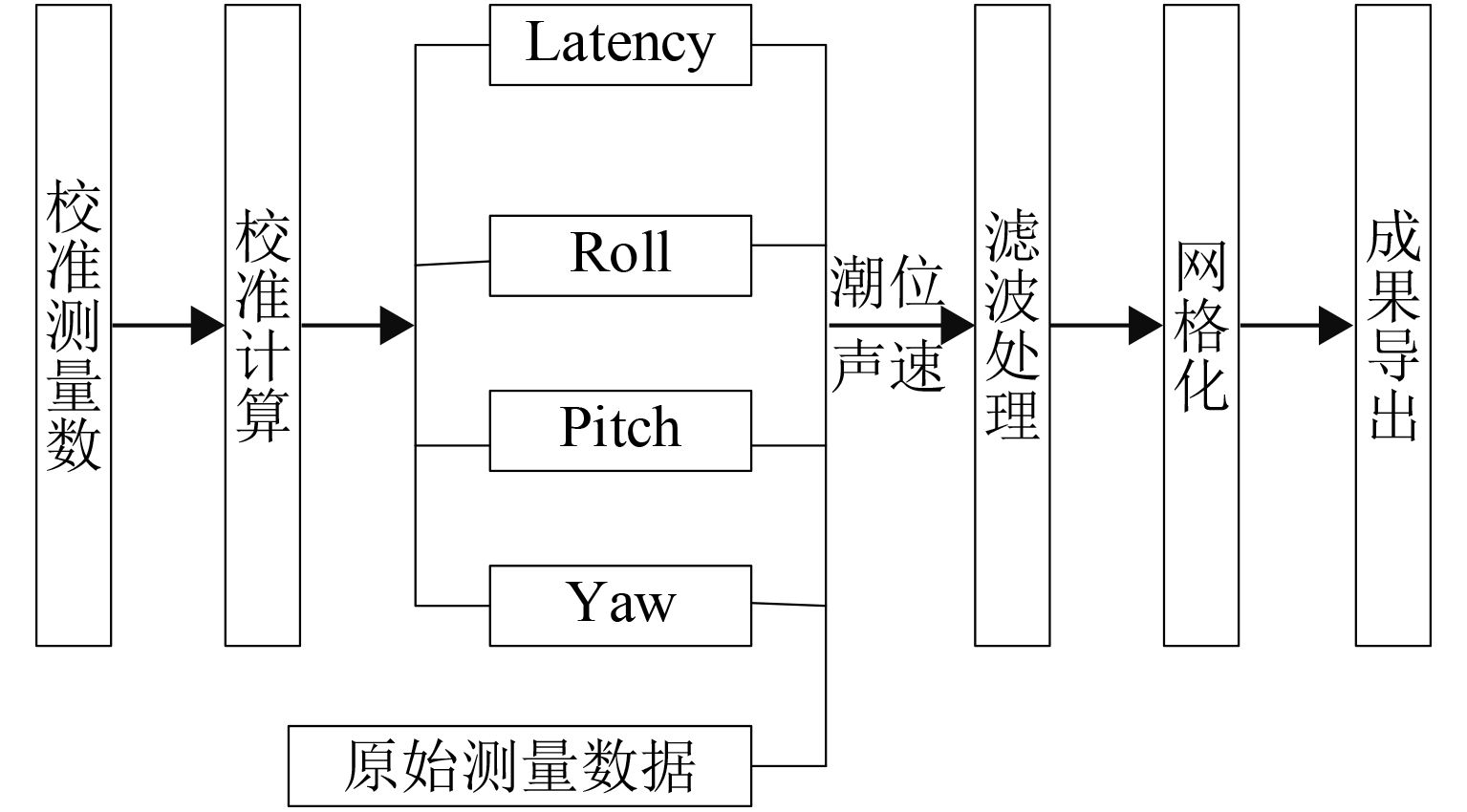 图 4 多波束测深数据处理流程图 Figure 4 The flow diagram of processing multi-beam bathymetric survey date |