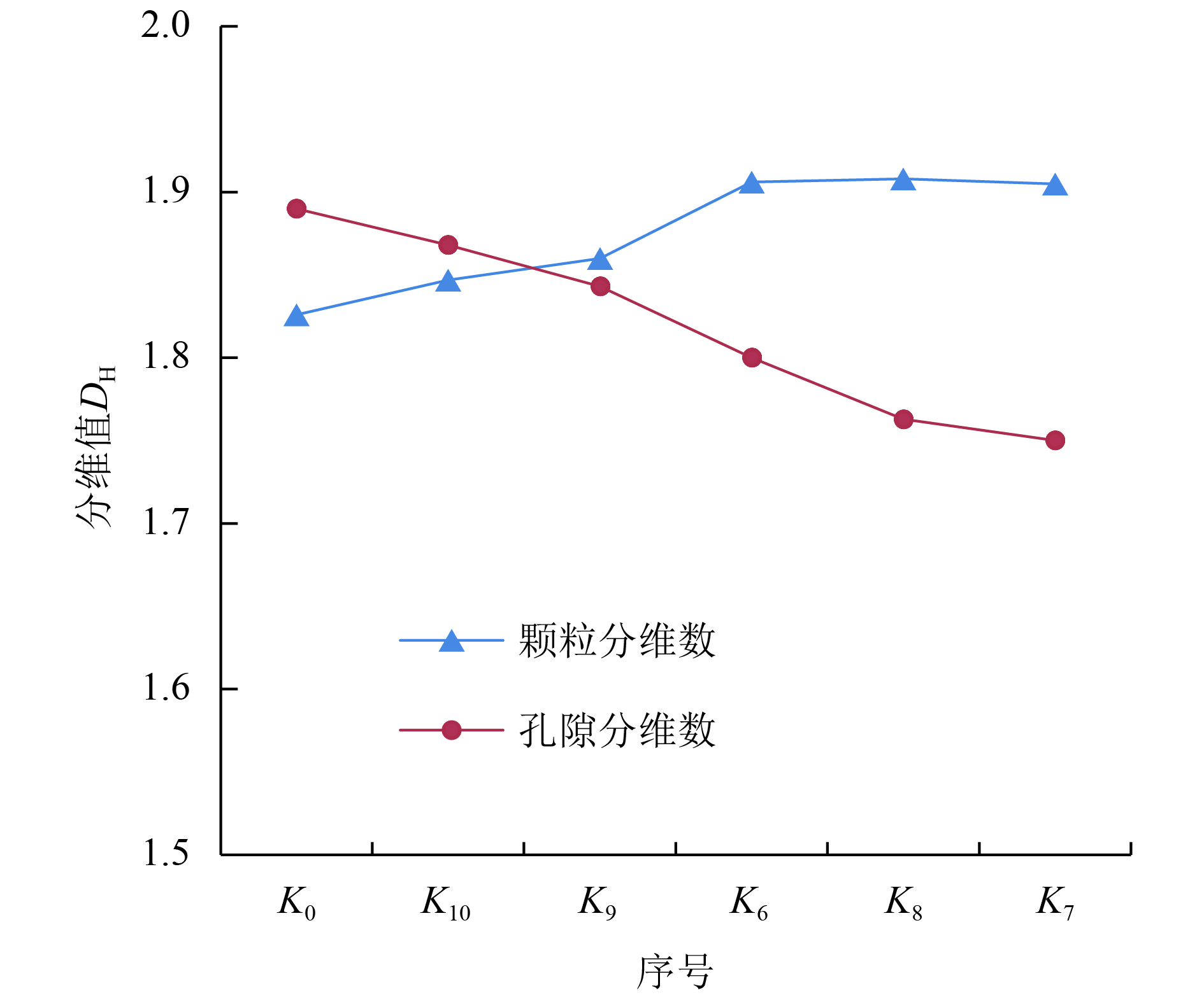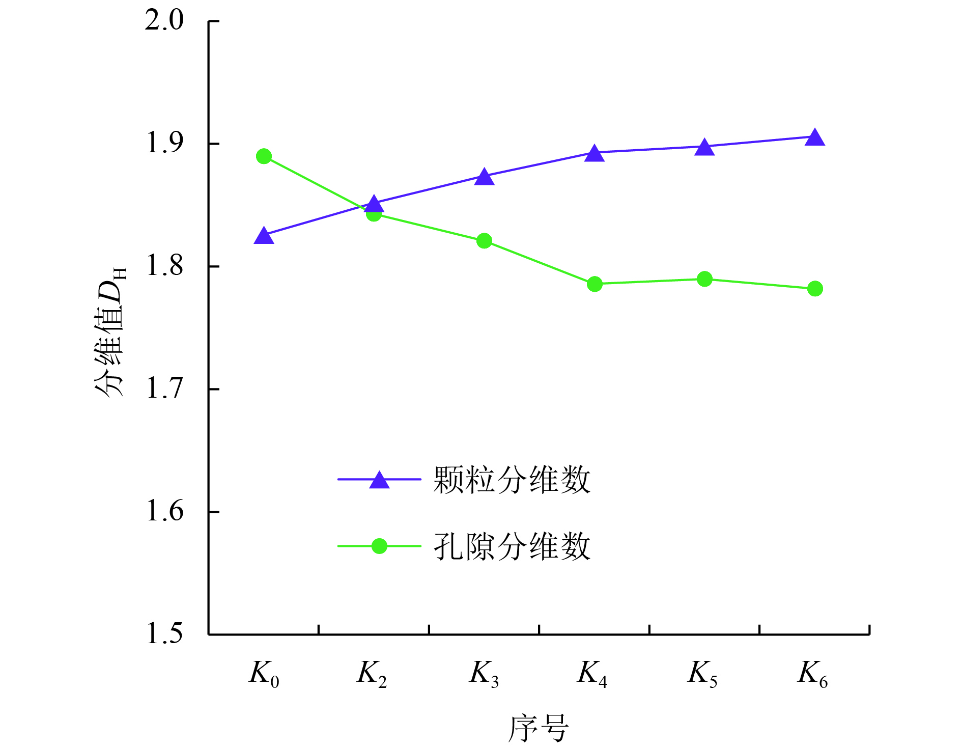 图 7 不同应变阶段土微观结构分形特征 Figure 7 Fractal characteristics of soil microstructure in different strain stages |