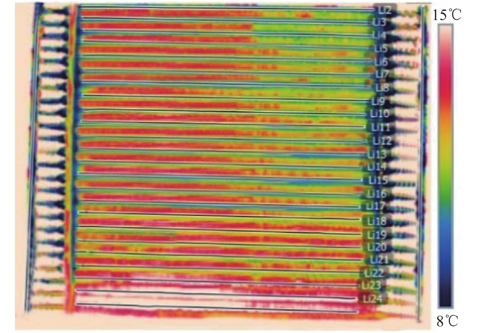 其中,A为换热面积,m2;Q为设定热负荷,W;TSat为制冷剂饱和蒸发温度,℃;Tw为管壁温度,℃;实验中通过红外热成像仪测得的Tw数据如图5所示.