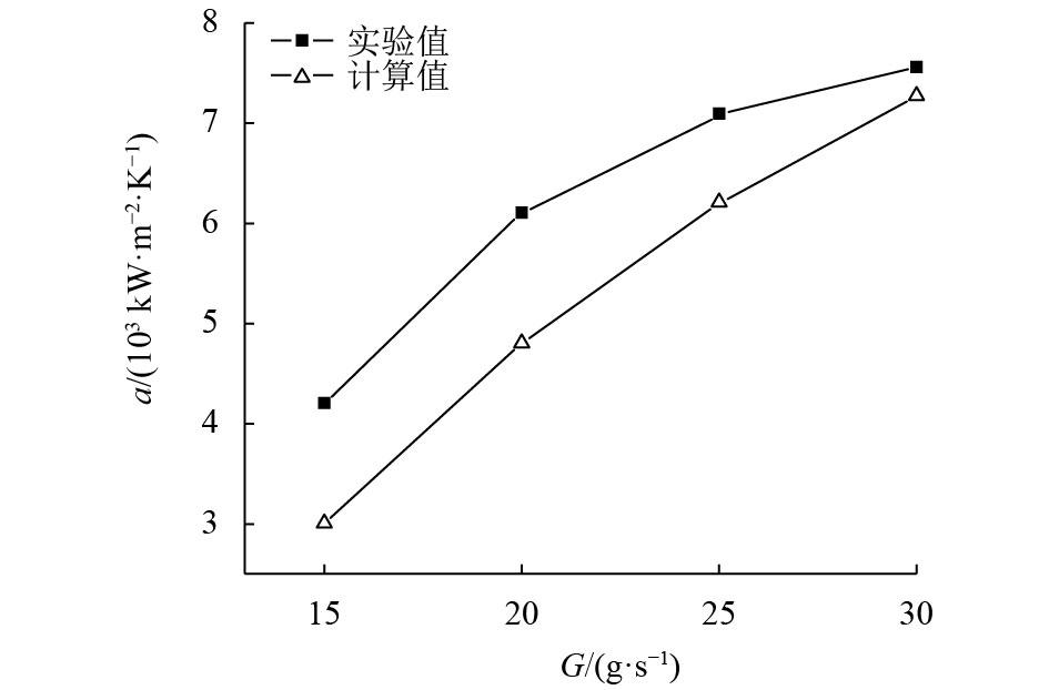 图 6 换热系数对比图 Figure 6 Comparison of experimental and calculated heat transfer coefficient |