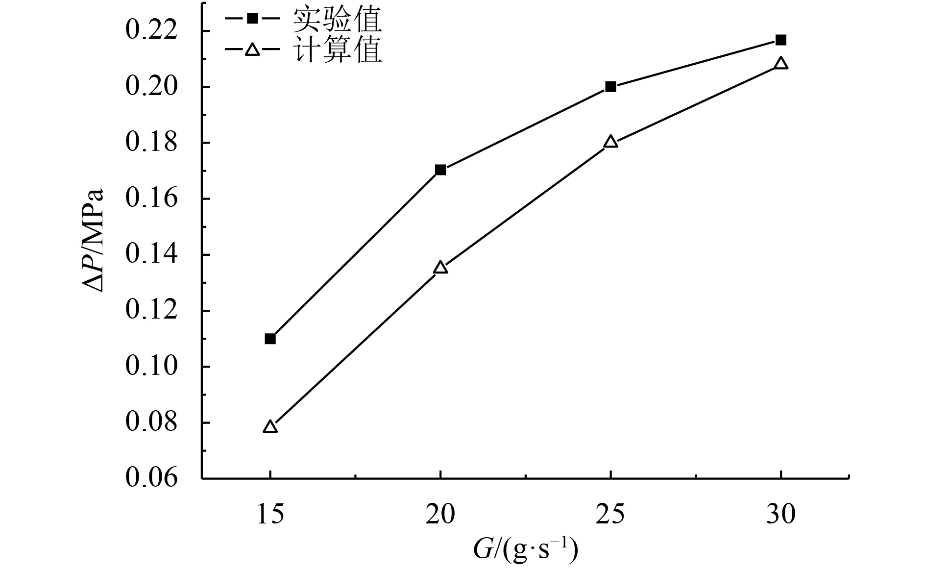 图 7 压降对比图 Figure 7 Comparison of experimental and calculated pressure drop |
