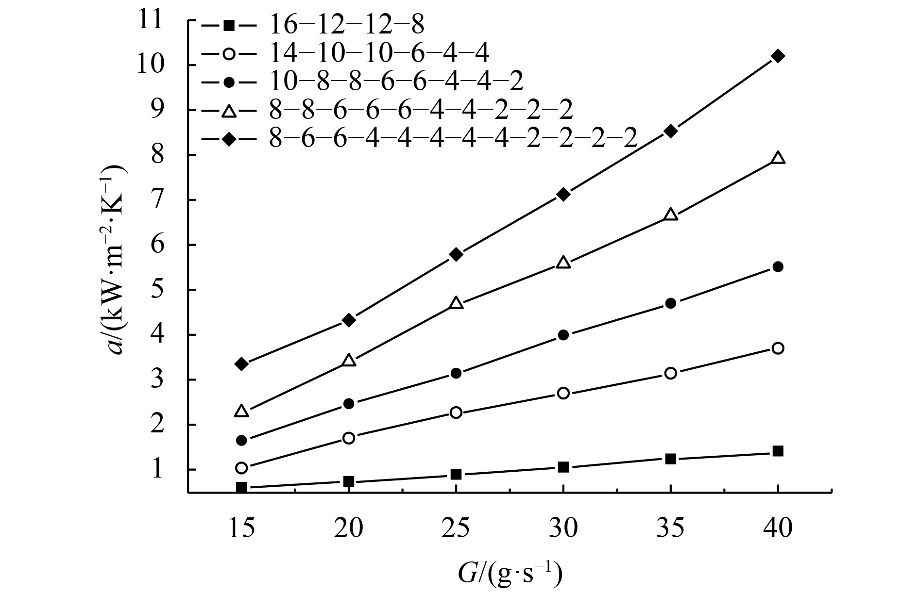 图 8 不同管程的换热系数 Figure 8 Heat transfer coefficient with tube arrangements |