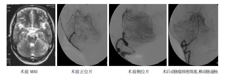综上所述,血管内治疗椎动脉夹层动脉瘤是一种较为安全、可靠的方法,椎动脉夹层动脉瘤的治疗方案选择较为复杂,术前应综合分析动脉瘤的形状、动脉瘤与小脑后下动脉的关系、对侧椎动脉的发育情况等相关因素。