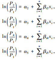 式中,Pj为因变量y= j的概率;y为因变量;j为因变量取值;xi为分自变量(i=1…n);i为哑变量标号;αj,βij为待标定参数。
