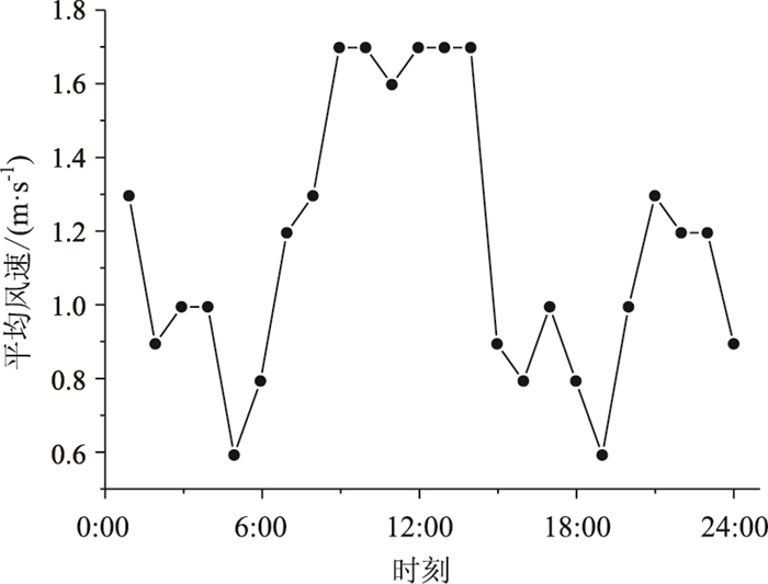 式中,ΔT为大气温度Ta与路表温度Tr的绝对温差;v为各时刻的实测平均风速。图 11为2015年8月7日各时刻的实测平均风速值。