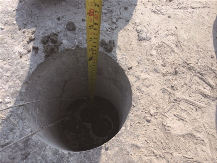 | 图 2 旧水泥混凝土层的温度传感器埋设 Fig. 2 Temperature sensors buried in previous cement concrete layer |