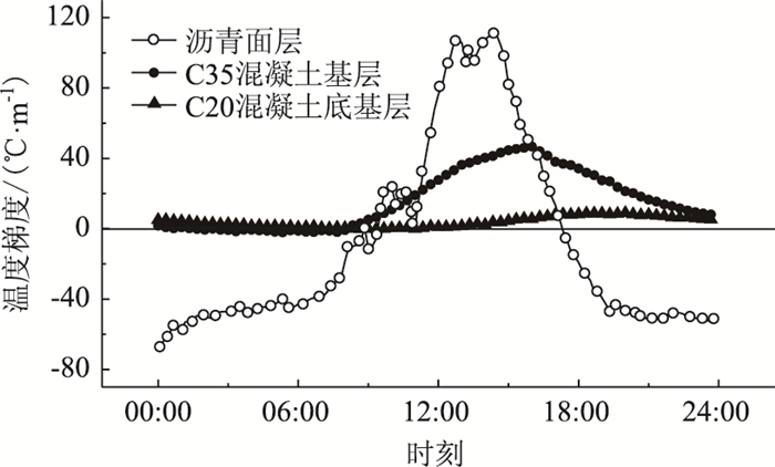 | 图 7 各结构层温度梯度随时间的变化 Fig. 7 Temperature gradients of pavement structure layers varying with time |